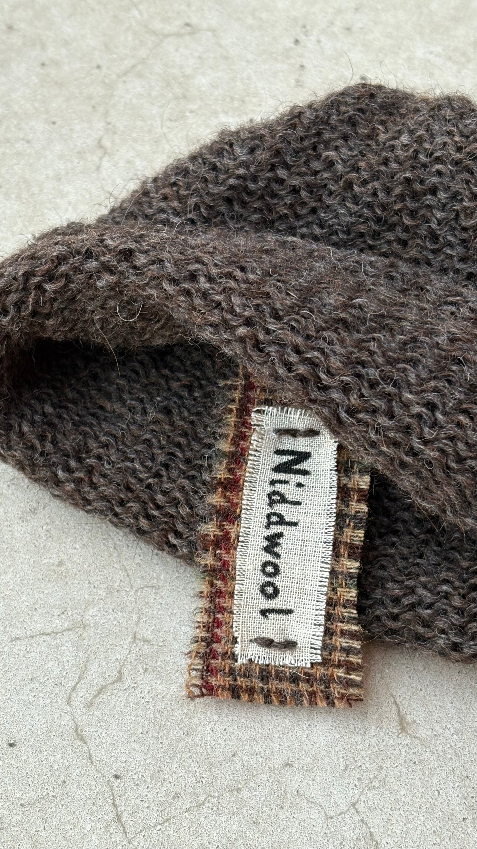 The Niddwool tag is made from British scrap tweed wool sourced from a wool mill in Yorkshire. Each tag is tied and stitched using leftover yarns, so the yarn colour may vary from the yarn you have chosen. The scrap wool cloth is unique to each wool accessory, making every piece one of a kind. Niddwool is committed to sustainability and uses only natural fibres.